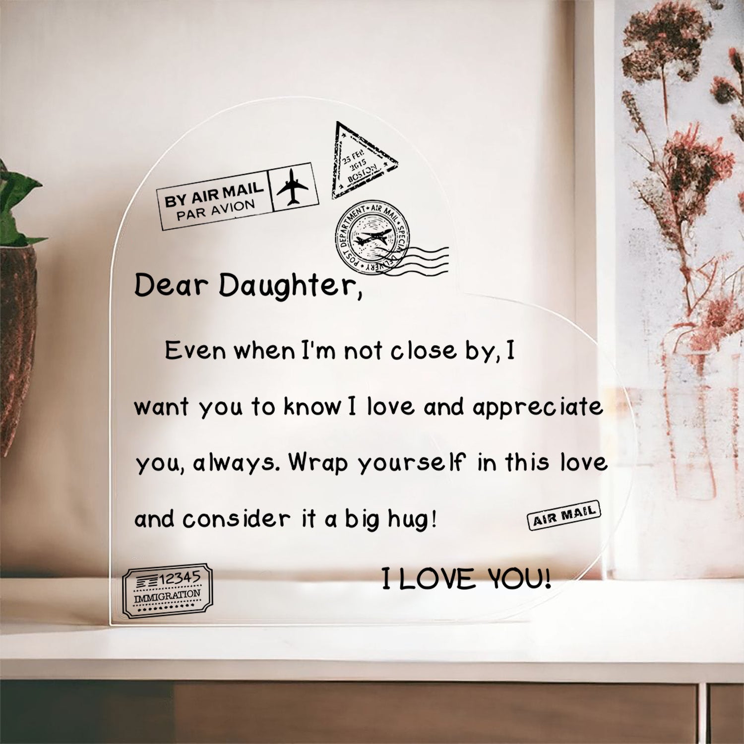 Heartfelt Message: Even when I'm not close by, I want you to know l love and appreciate/I'm so proud of you, always. Wrap yourself in this love and consider it a big hug!