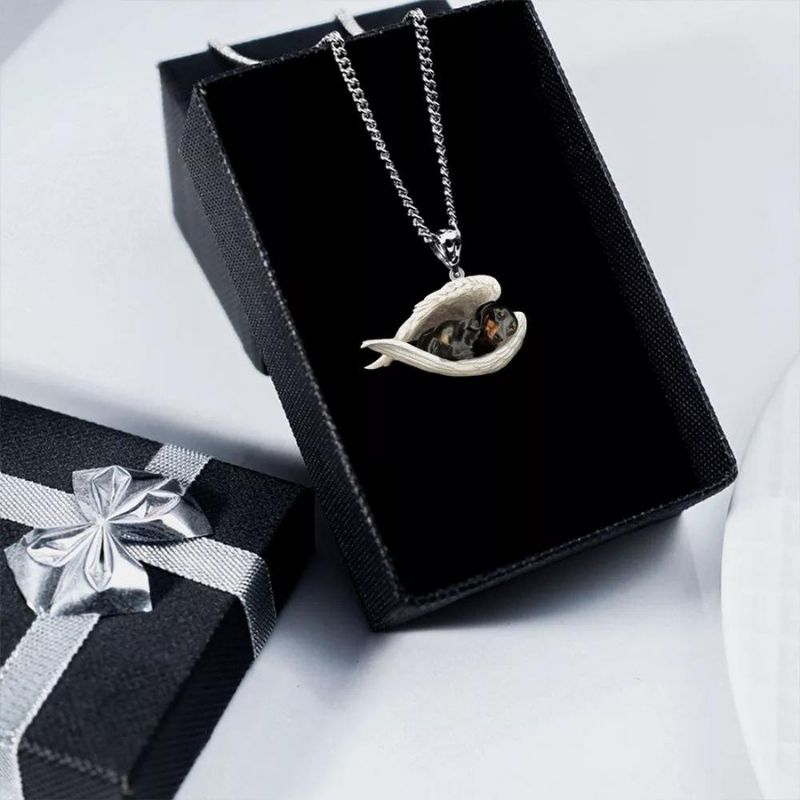 Black and Tan Dachshund Sleeping Angel Stainless Steel Necklace SN015