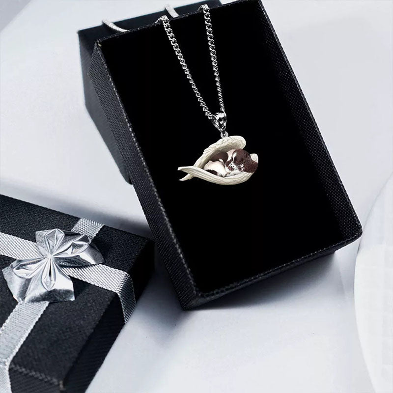 English Springer Spaniel Sleeping Angel Stainless Steel Necklace SN031