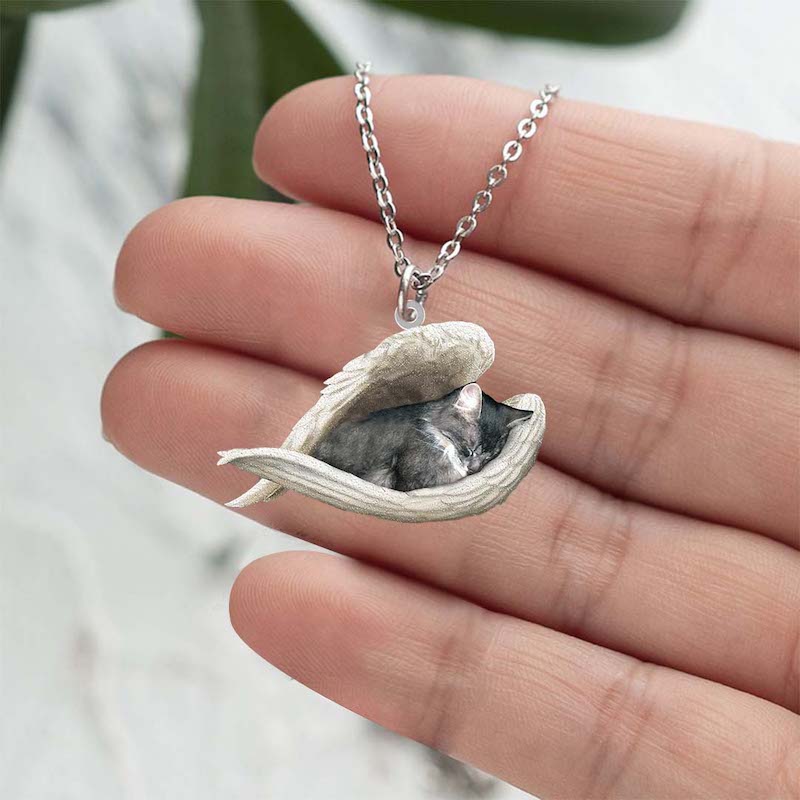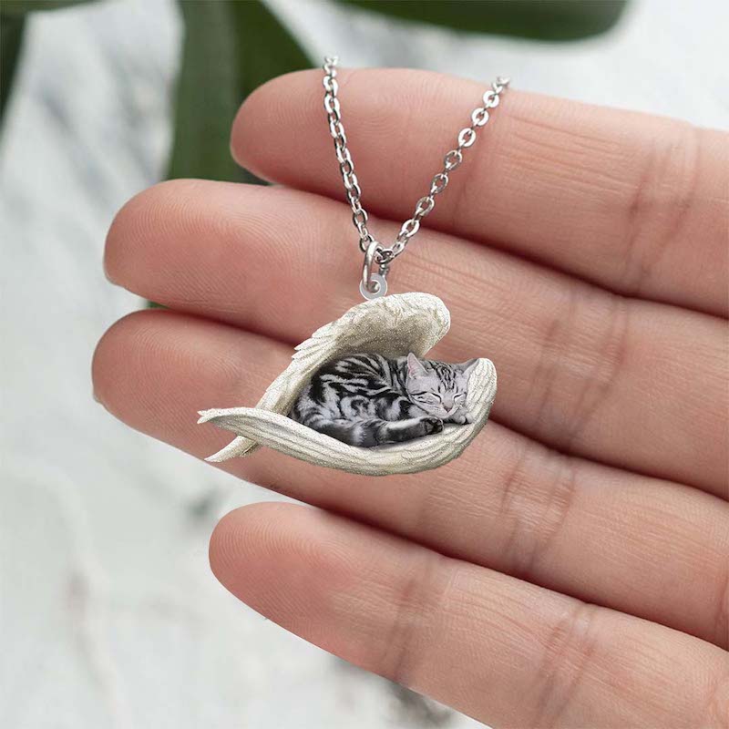 American Shorthair Cat Sleeping Angel Stainless Steel Necklace SN170