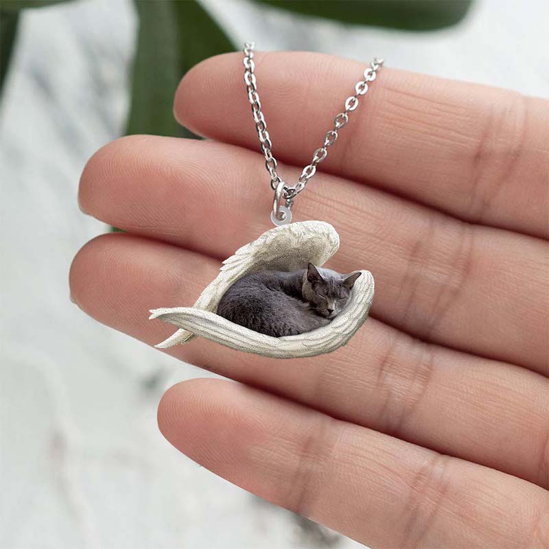 Russian Blue Cat Sleeping Angel Stainless Steel Necklace SN164