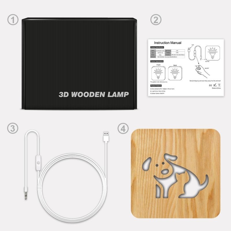 • Product Accessories: Wooden night light + 1 USB cable + 1 Manual + 1 (Color box packaging)